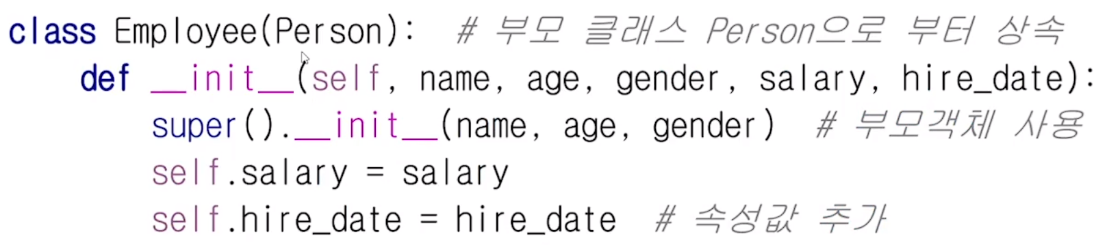 super()를 사용해서 부모 클래스로 부터 가져올 속성 설정 가능