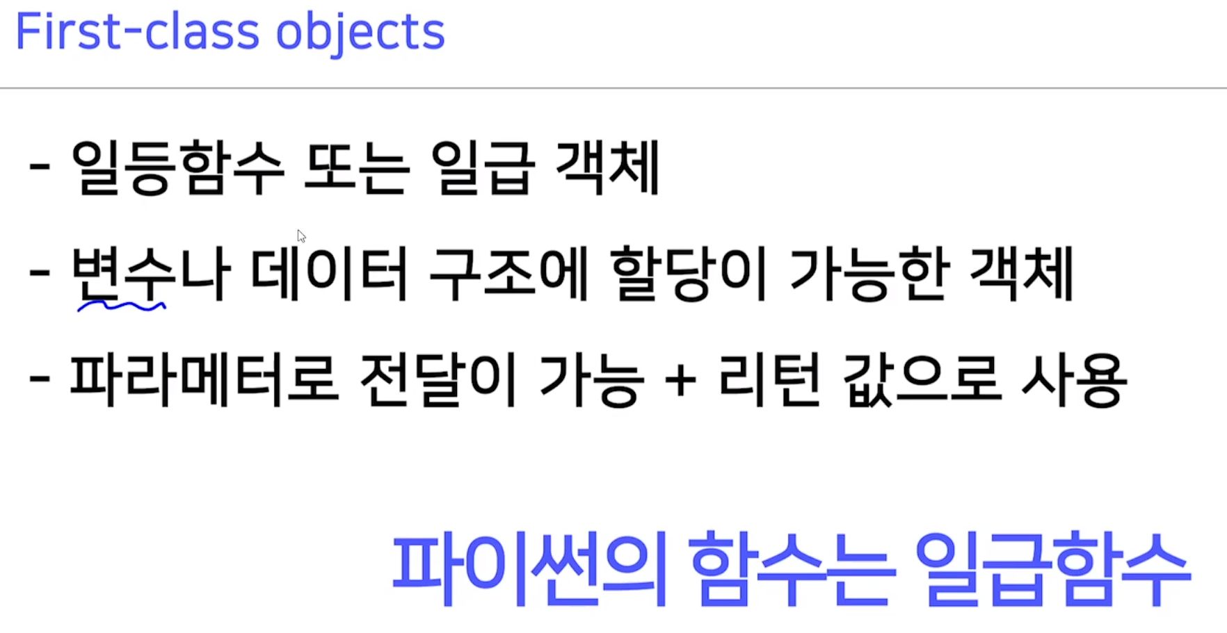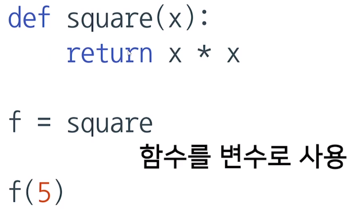 파이썬에서는 일급함수를 취급함