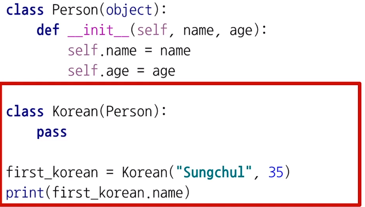 부모 클래스를 괄호에 넣으면 속성과 메소드 사용 가능