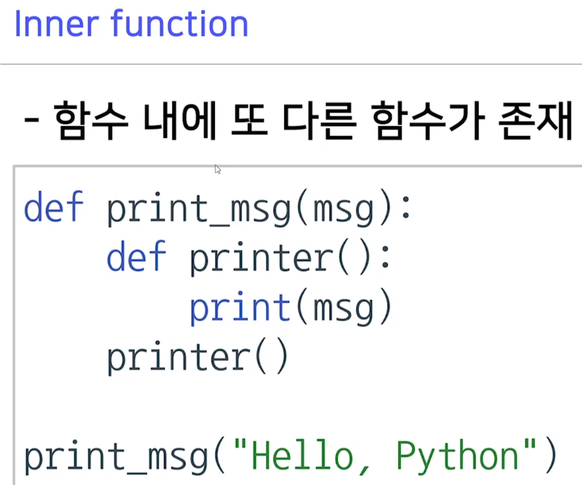 함수 내부에 또 함수가 존재하는 것을 inner function이라고 함