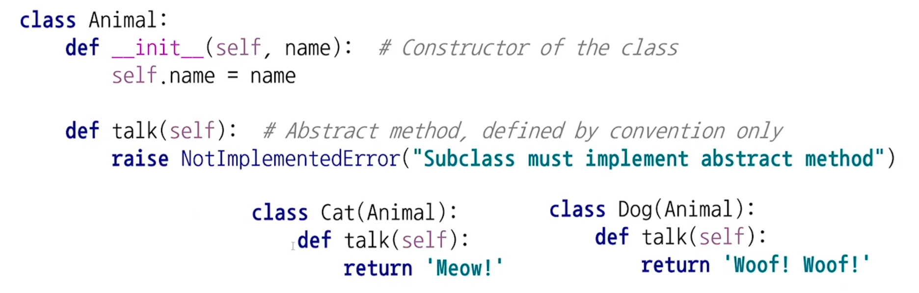 Cat, Dog 둘다 같은 talk 메소드를 쓰지만 그 결과는 다르게 나타남