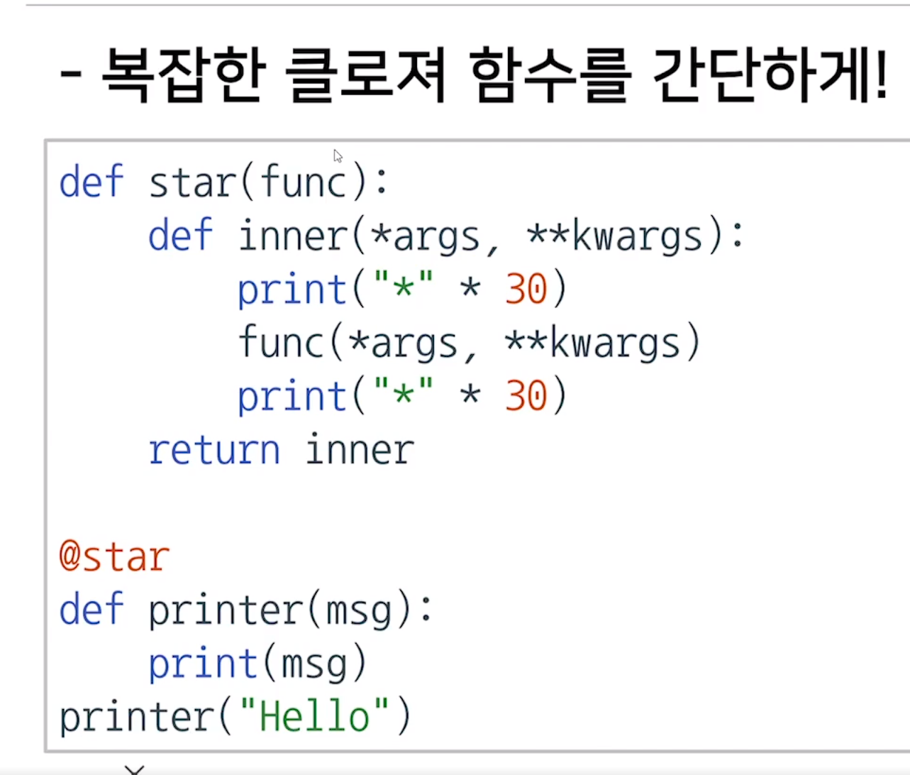 복잡한 클로저를 쉽게 사용하기 위해 데코레이터를 사용