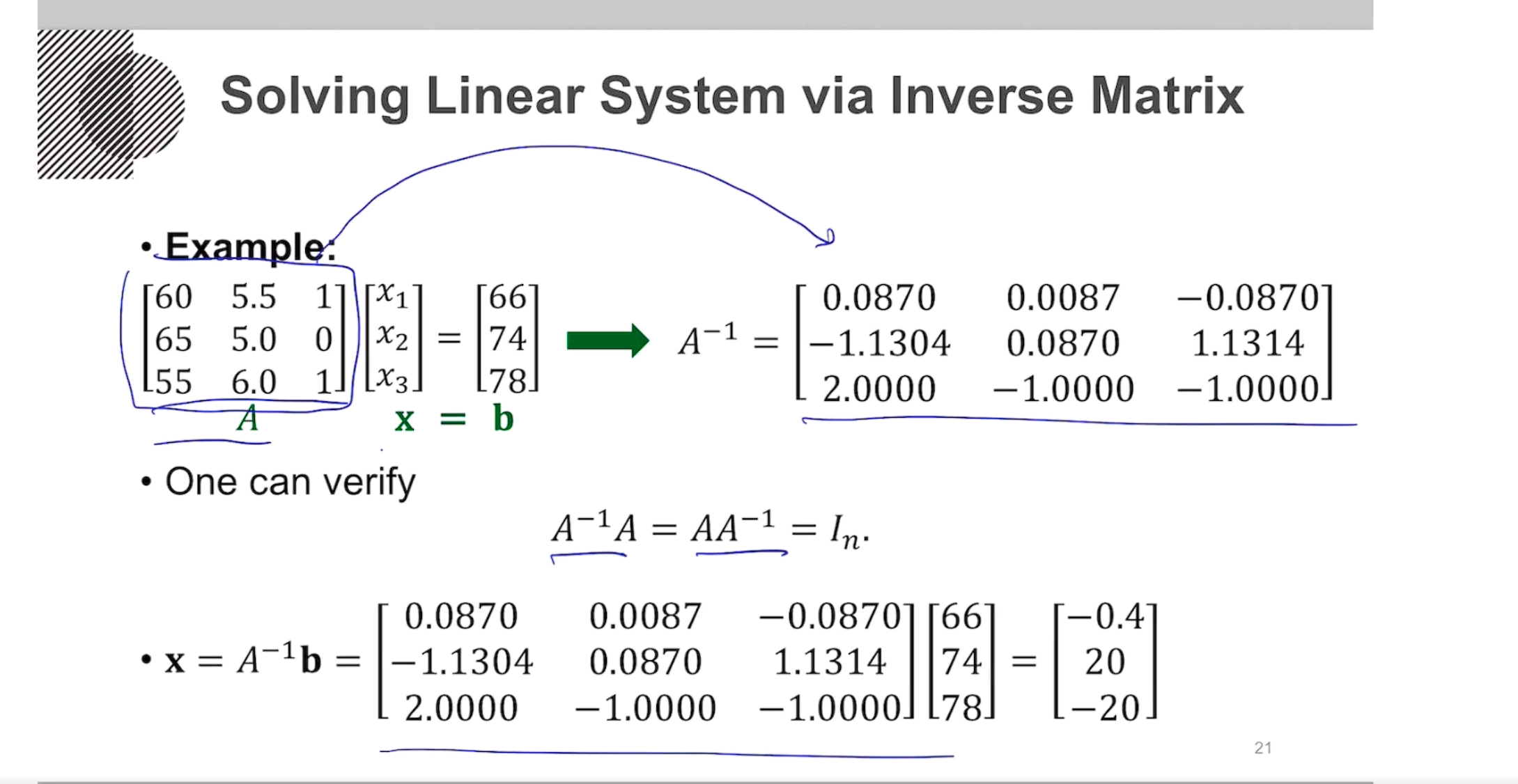 역행렬을 이용해서 x의 값을 구할 수 있다