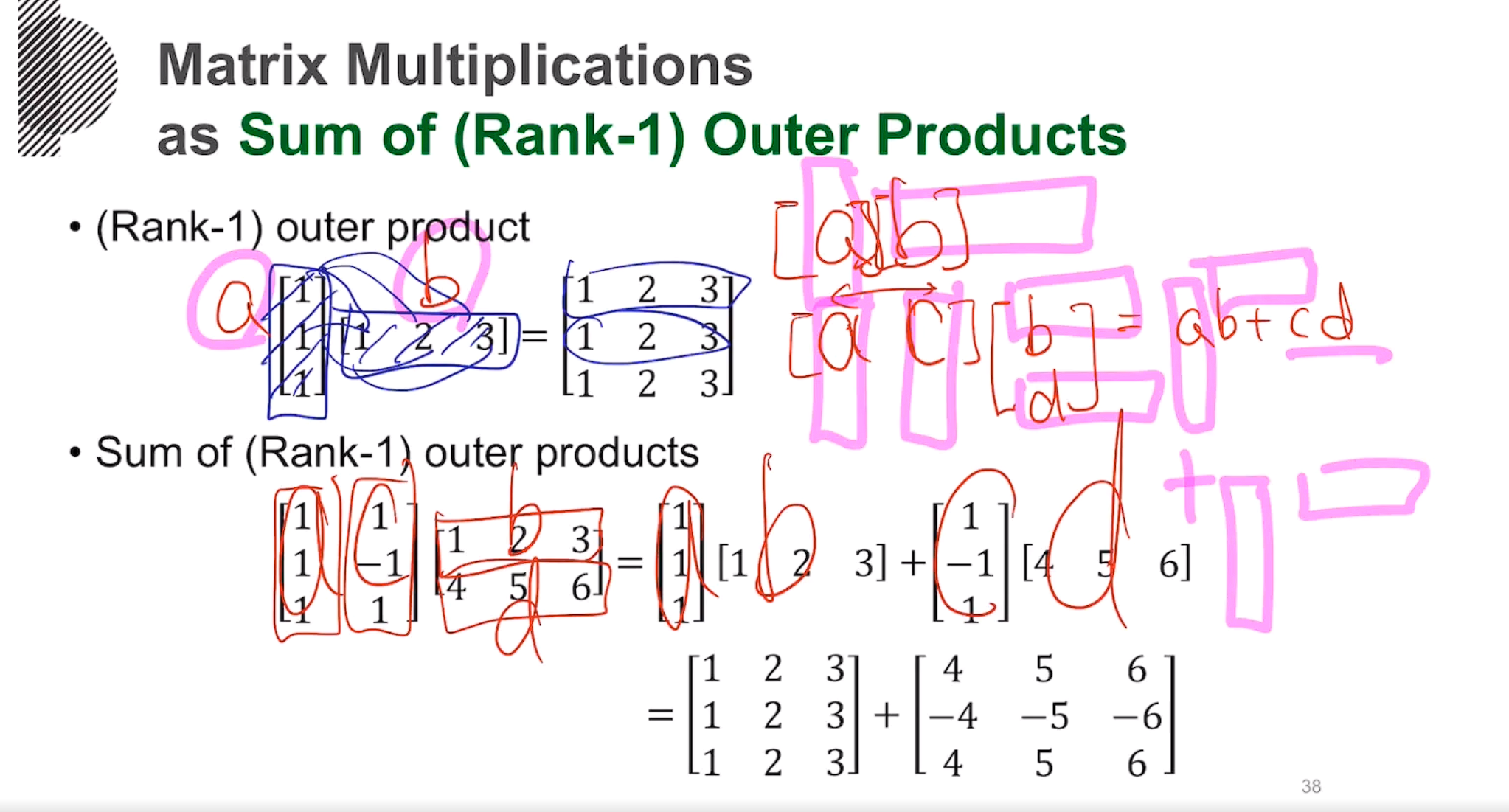 기존의 매트릭스 곱을 확장해서 생각해보면, 상수(a,b,c,d)였던 자리에 벡터를 넣는다는 개념을 떠올릴 수 있다
